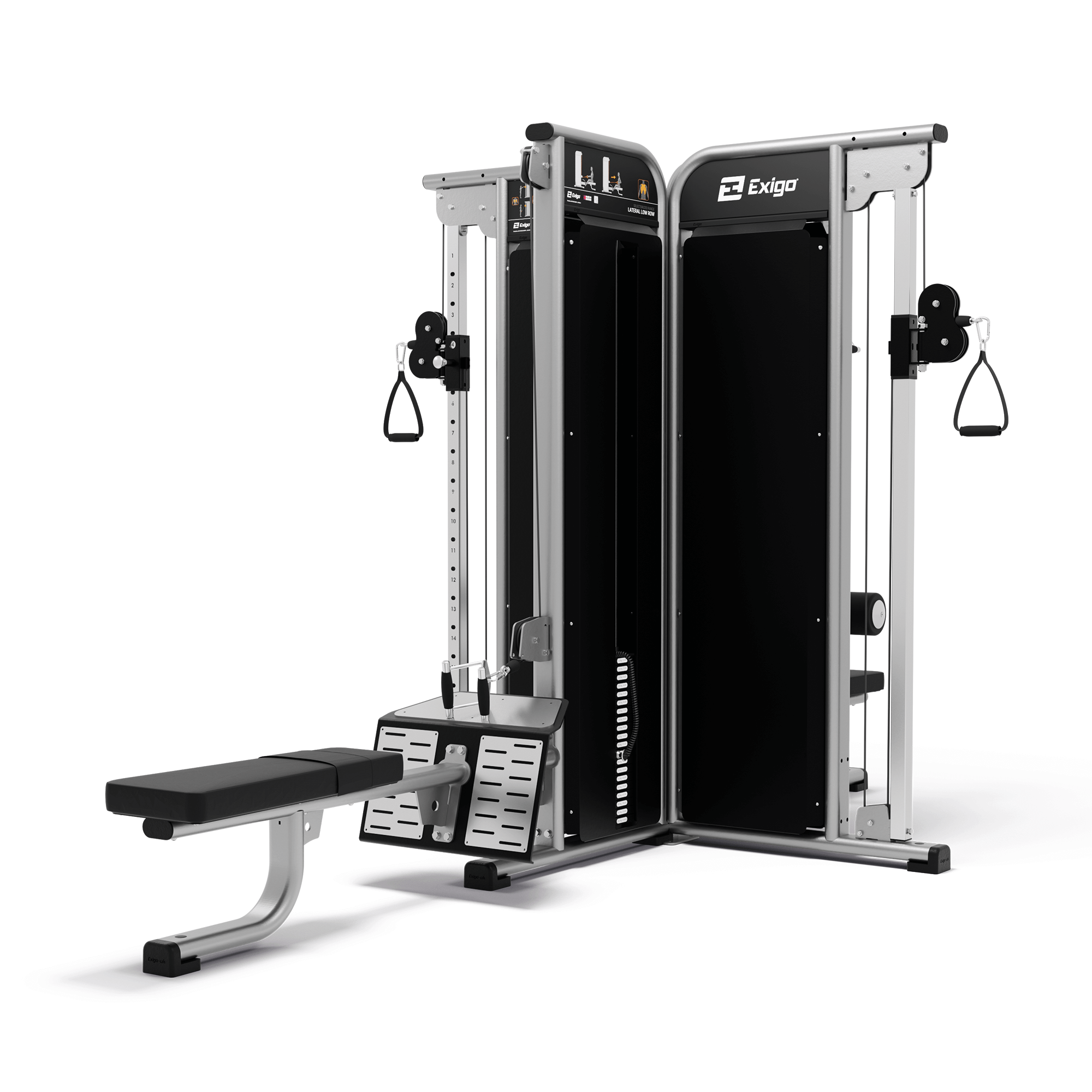 The Exigo 4 Station Jungle Gym is a great multi-functional and space saving solution that is made up of two High Low Pulleys, a Low Row, and a Lateral Pulldown.