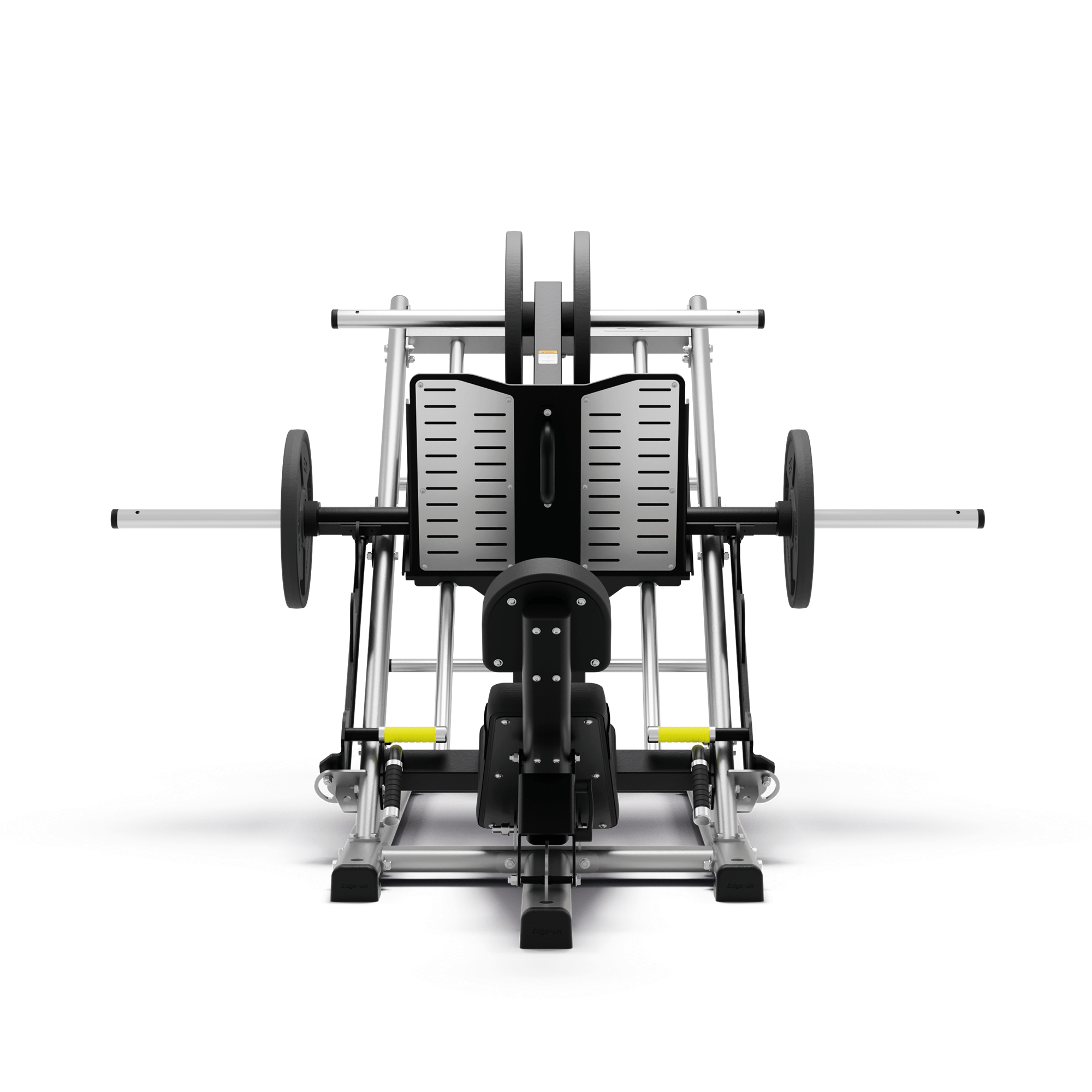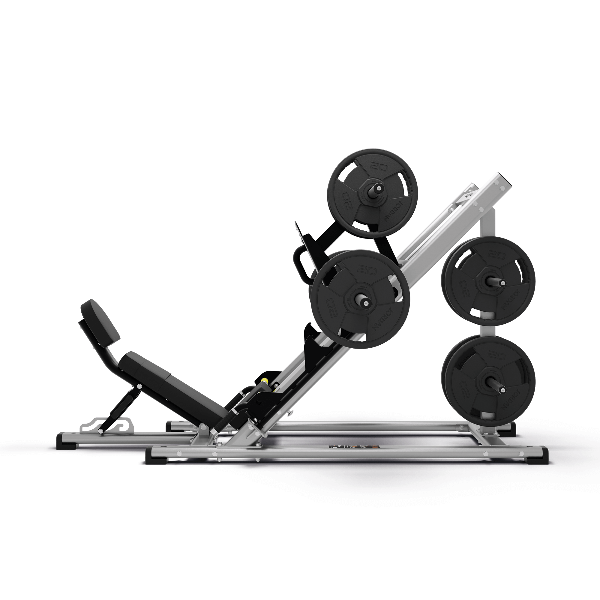 This piece of gym equipment has a starting weight of 60KG with the ability to load an additional 680KG weight on 4 loading points to provide resistance during the exercise. The 45 Degree Leg Press Machine allows reverse banding with our band attachment, allowing the user to reduce the 60KG starting weight, making it suitable for beginners, rehabilitation and single leg muscle use.
