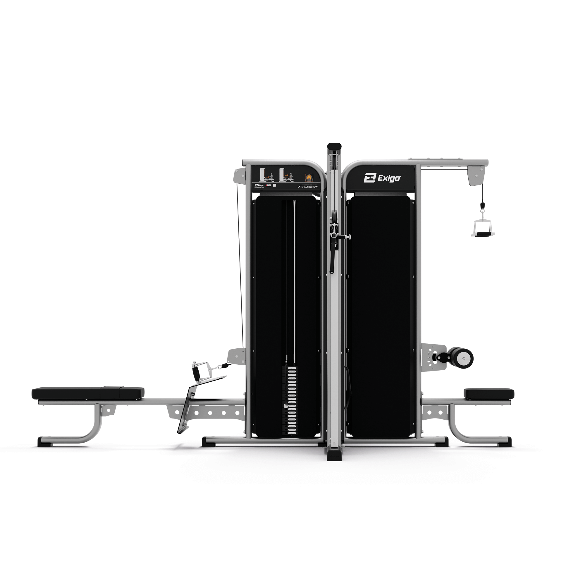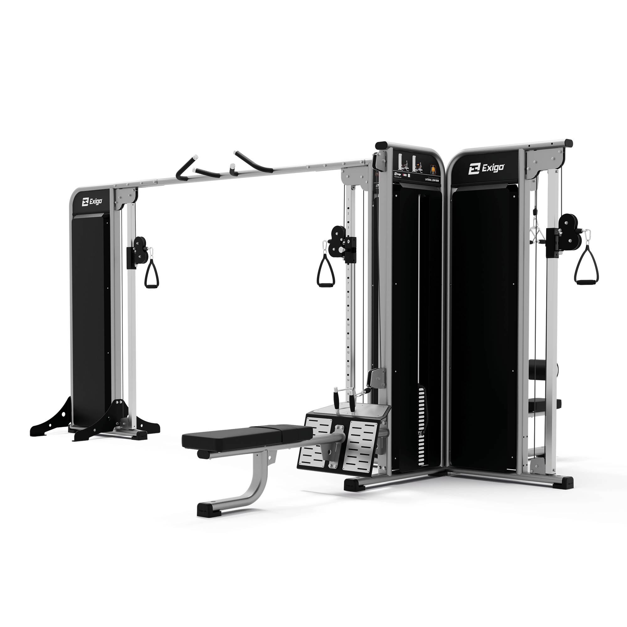 The Exigo 4 Station Jungle Gym is a great multi-functional and space saving solution that is made up of two High Low Pulleys, a Low Row, and a Lateral Pulldown. 5kg incremental weights allow precise resistance increases and numerous load options.