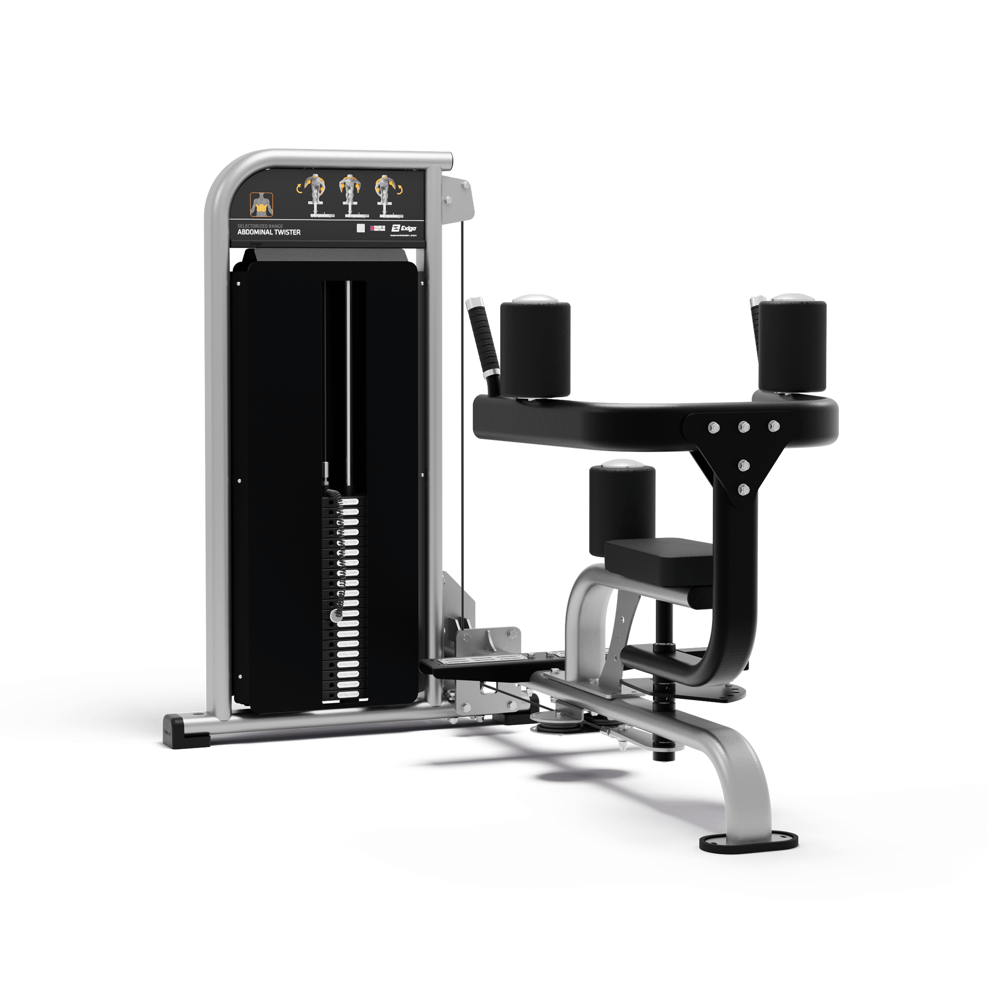 The Exigo Abdominal Twister is a great machine for working the abs and strengthening the core. It offers multiple start positions and features rollers with angled handles to support a comfortable workout along with stainless steel anti slip footplates for secure foot placement. 5kg incremental weights allow precise resistance increases and numerous load options.