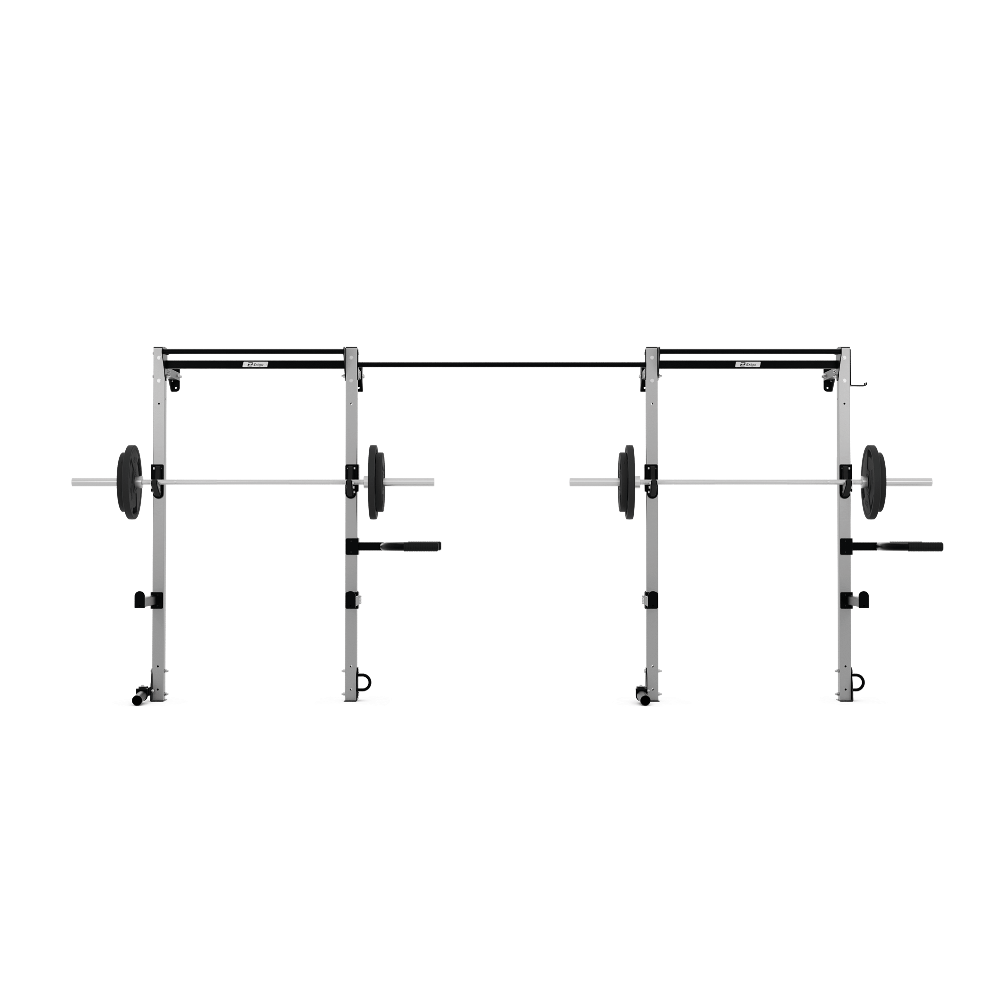 The Exigo E70 2 Bay Wall Rack is fully commercial, made with heavy duty 70x70x3mm thick steel uprights and provides two training stations.