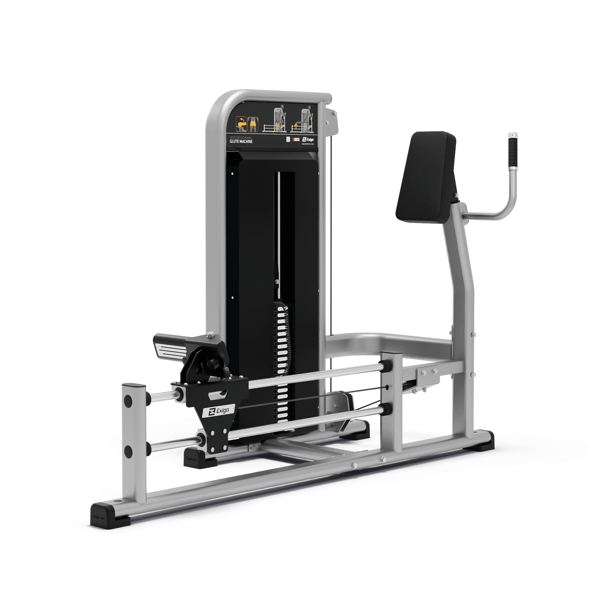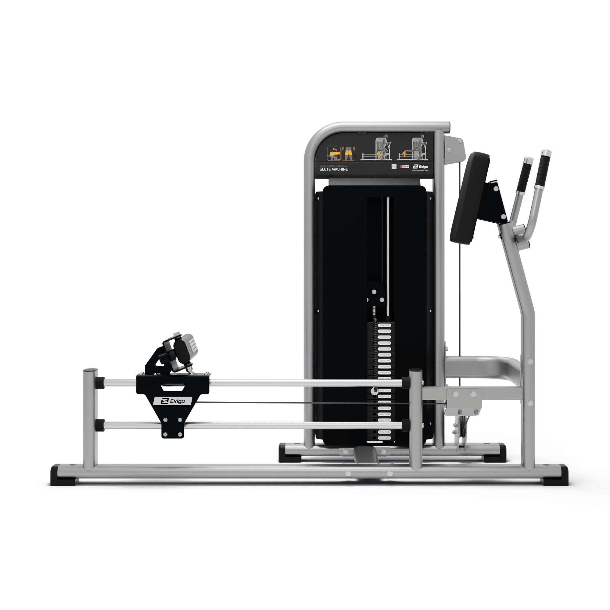 The Exigo Glute Machine effectively isolates and builds the gluteal muscles. This exercise involves swinging the leg backwards and is performance one leg at a time. It features angled elbow pads to set the user up correctly and comfortable handles to provide support throughout the exercise. 5kg incremental weights allow precise resistance increases and numerous load options.