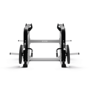 The Exigo Plate Loaded ISO-Lateral Lunge is a multi-functional machine that allows the user to perform numerous exercises – including squats, lunges, shrugs, and dead lifts. Multiple handle positions provide various strength curves and starting positions. Independent arm movements allow the user to train each limb simultaneously or separately, as well as loading different weights for each limb if necessary. Optional chrome storage horns with high impact ends are also available to provide storage for weight plates.