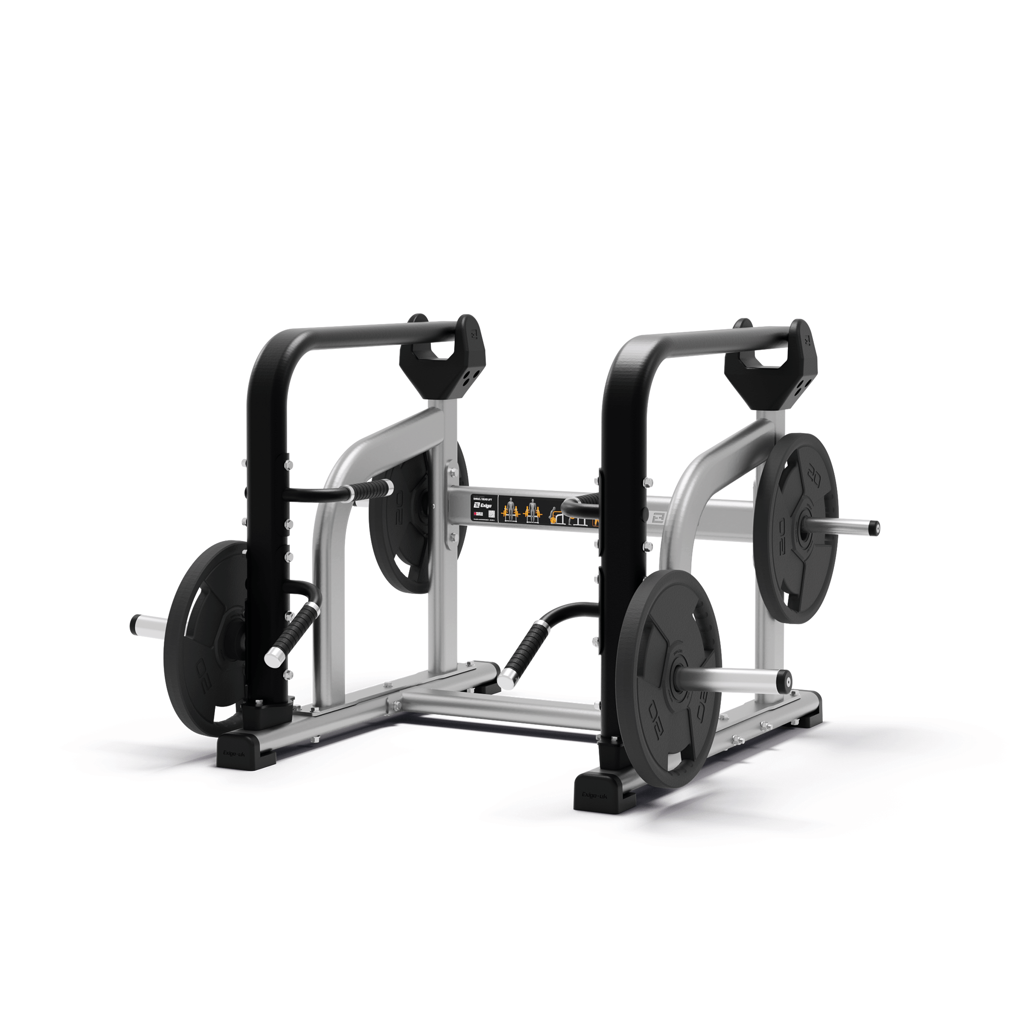 The Exigo ISO-Lateral Shrug/Deadlift is one of the most versatile machines in our Plate Loaded range. It’s designed to allow the user to target both the upper and lower body as they do deadlifts, trap shrugs, squats, and weighted lunges. Multiple grip positions allow the user to face inward or outward for various exercises. Independent arm movements allow the user to train each limb simultaneously or separately, as well as loading different weights for each limb if necessary. Optional chrome storage horns with high impact ends are also available to provide storage for weight plates.
