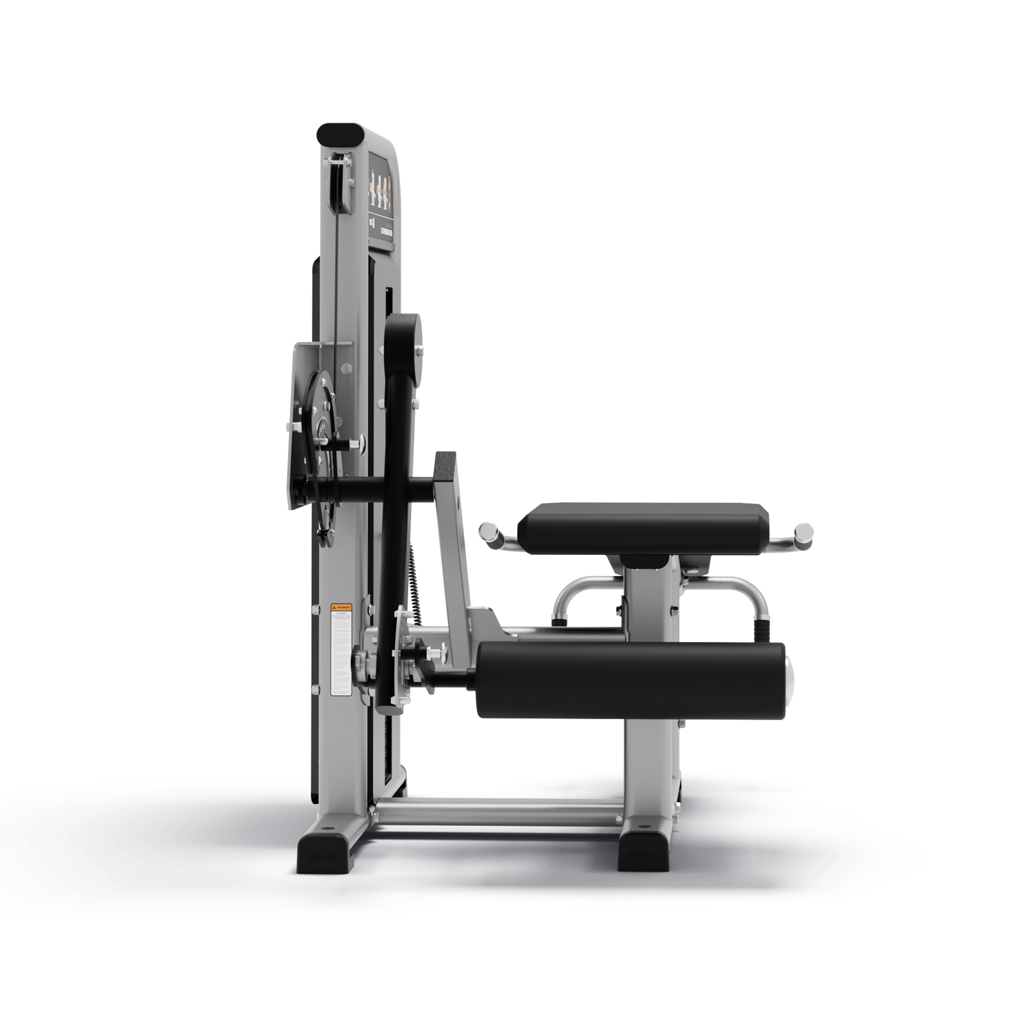 The Exigo Leg Extension / Leg Curl is a dual use machine capable of isolating the quadriceps and hamstrings. It offers multiple starting positions for both exercises and features a split seat pad along with an adjustable leg pad and multiple side handles to support and set up the user correctly throughout both exercises. 5kg incremental weights allow precise resistance increases and numerous load options.