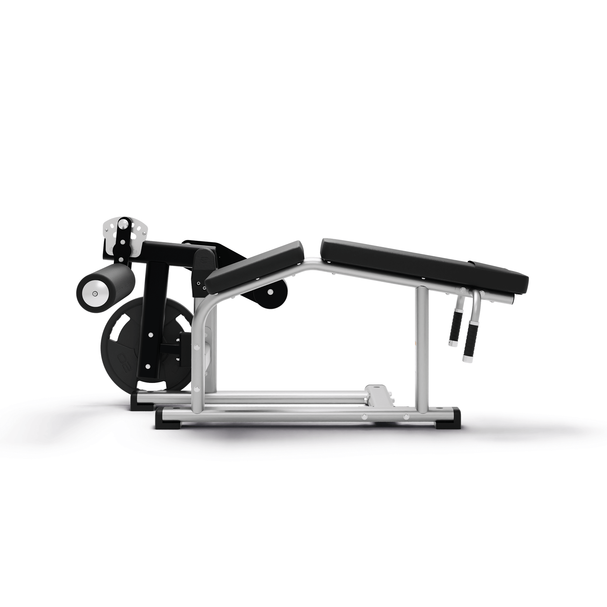The Exigo Plate Loaded Lying Leg Curl is designed to isolate and build the hamstrings. It features an adjustable roller with 5 starting positions and ergonomic pads to set up the user correctly. Comfortable side handles provide extra support and stability during exercise.