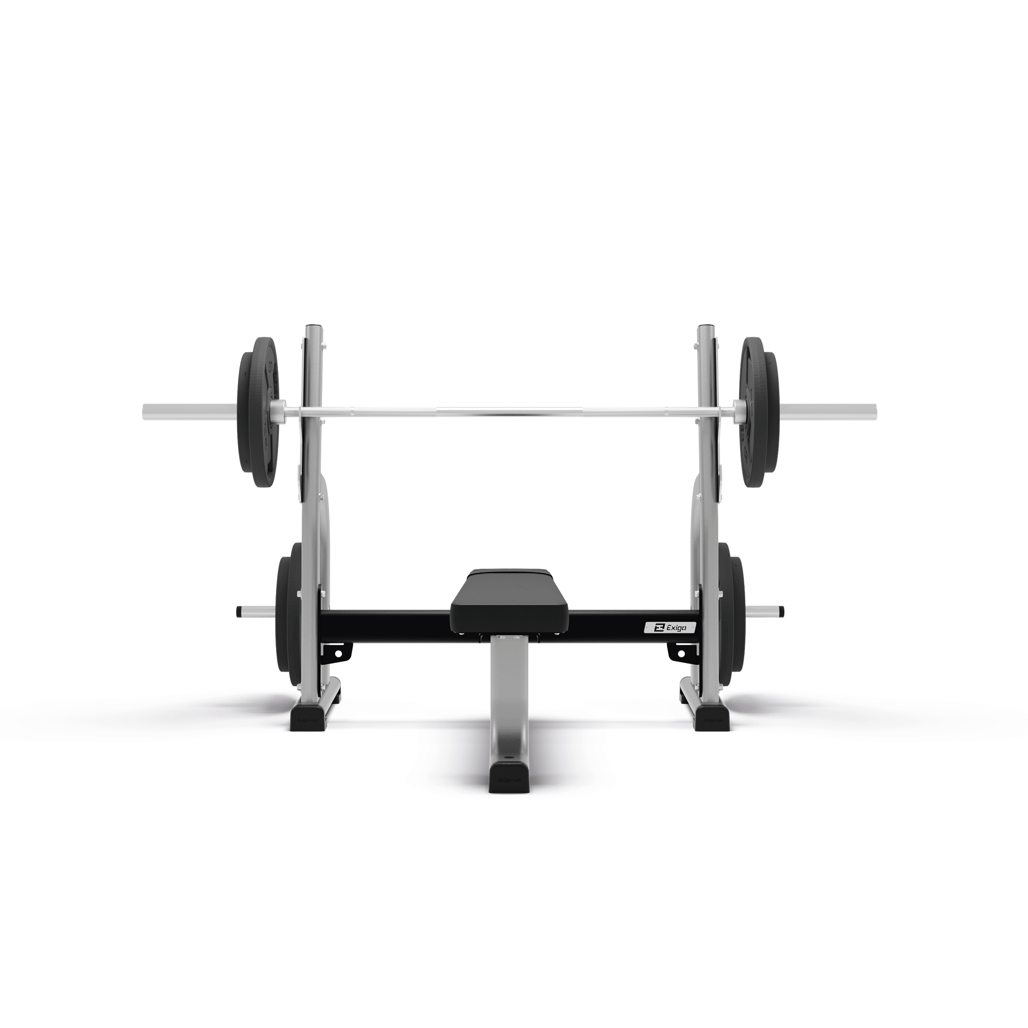 The Exigo Olympic Flat Bench is suitable for Olympic weight lifting and is a great addition to any commercial facility.