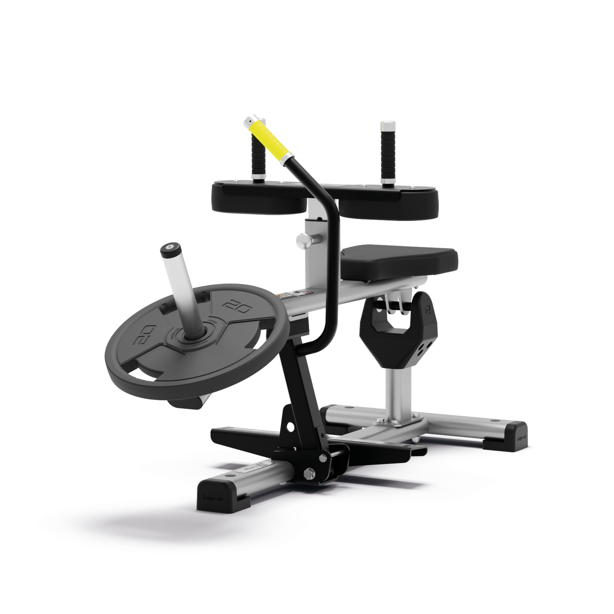 The Exigo Plate Loaded Seated Calf Raise is designed to isolate and build bigger calves. It features an adjustable thigh pad to accommodate various users as well as rubber ribbed handles and stainless steel anti-slip footplates for additional support and stability during exercise.