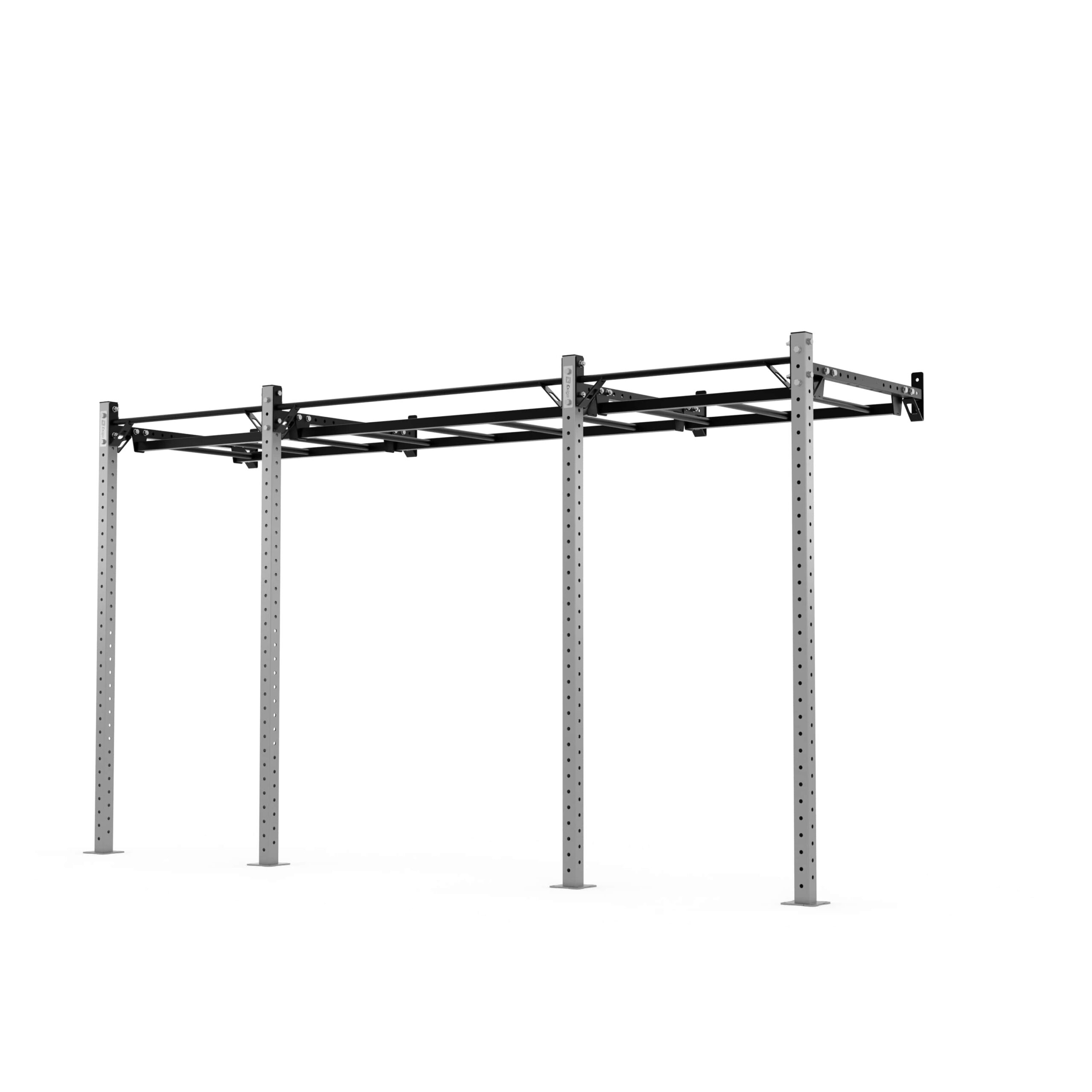The Exigo X70 2 Bay Monkey Bar Wall Rig is secured to the wall and floor to help make better use of space. This modular frame can be used as a standalone unit or as a starting point to be expanded upon when your facility or requirements grow. Add to the base unit with our wide range of attachments to provide the user with multiple training options. As standard this rig includes monkey bars plus 3 pull-up points suitable for muscle-ups, and can accommodate up to 2 squat stations.