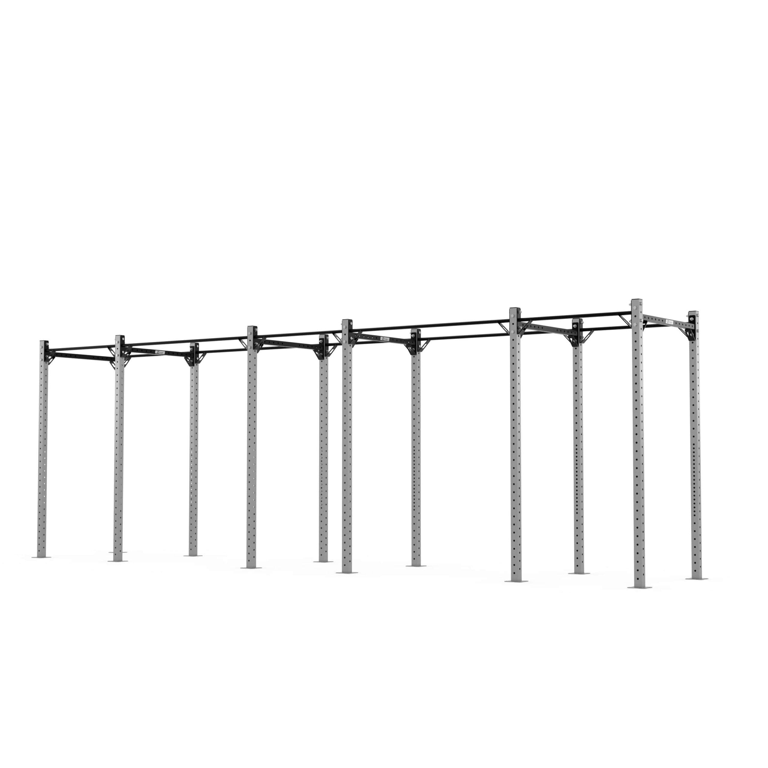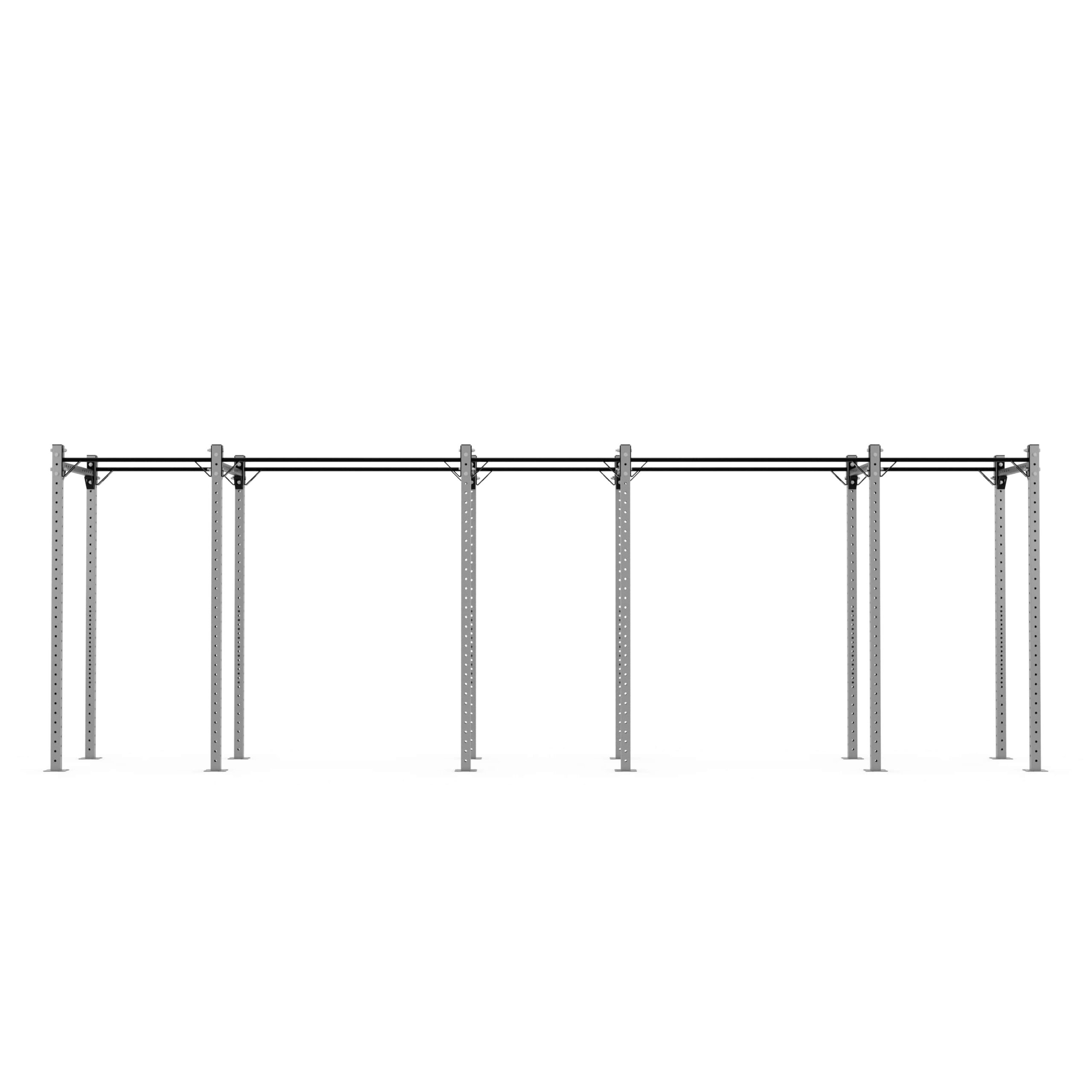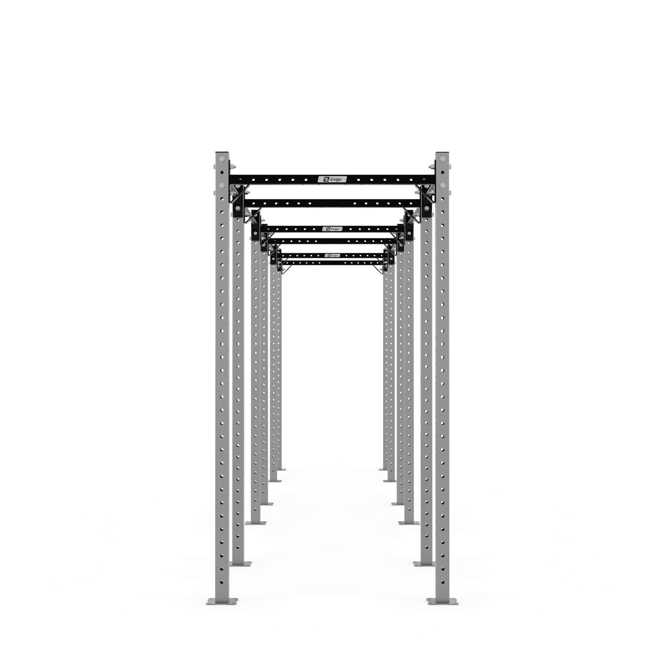 The Exigo X70 6 Bay Freestanding Rig has been designed with a smaller footprint for facilities with space considerations while still offering the essential features, this modular frame can be used as a complete set-up or as a starting point to be expanded upon when your facility or requirements grow. Enhance the base unit with our wide range of attachments and storage shelves to provide athletes with various training options and easily accessible storage points. As standard this rig includes 10 pull-up stations suitable for muscle-ups and can accommodate up to 6 squat stations.