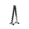 The Tower Dumbbell Rack is a vertical storage rack for studio dumbbells and beautybells with a compact, tower style.